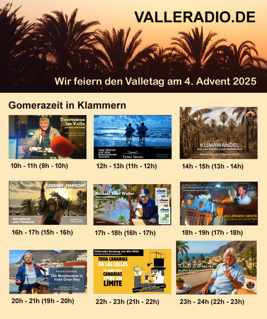 Reisen, Menschen kennenlernen, Respekt für Natur und Umwelt. Unser Hauptaugenmerk liegt dabei auf La Gomera, Valle Gran Rey. Ein unterhaltsames und informatives Programm für Menschen, die offen sind für die Kulturen dieser Welt. . Wir wünschen jetzt viel Spaß mit reichlich guter Musik. Tagsüber mit Guter-Laune-Musik jenseits des Mainstreams. Abends,Continue Reading